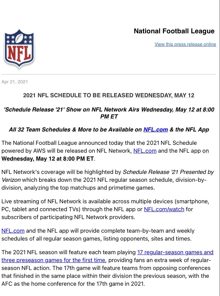 The 2021 Nfl Schedule Will Officially Be Released On May 12th Blogging The Boys